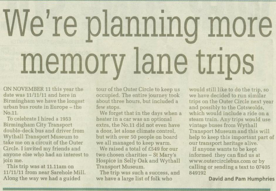 There was an item in the Birmingham Mail on the 22nd November. Here it is in all its glory!!