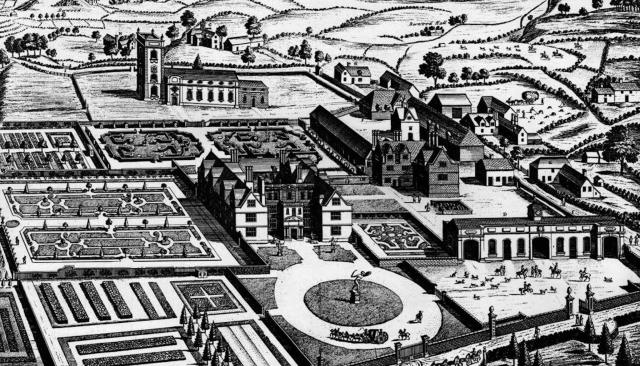 The South Prospect of Castle Bromwich Hall by Henry Beighton, 1726 – showing the layout of the gardens.